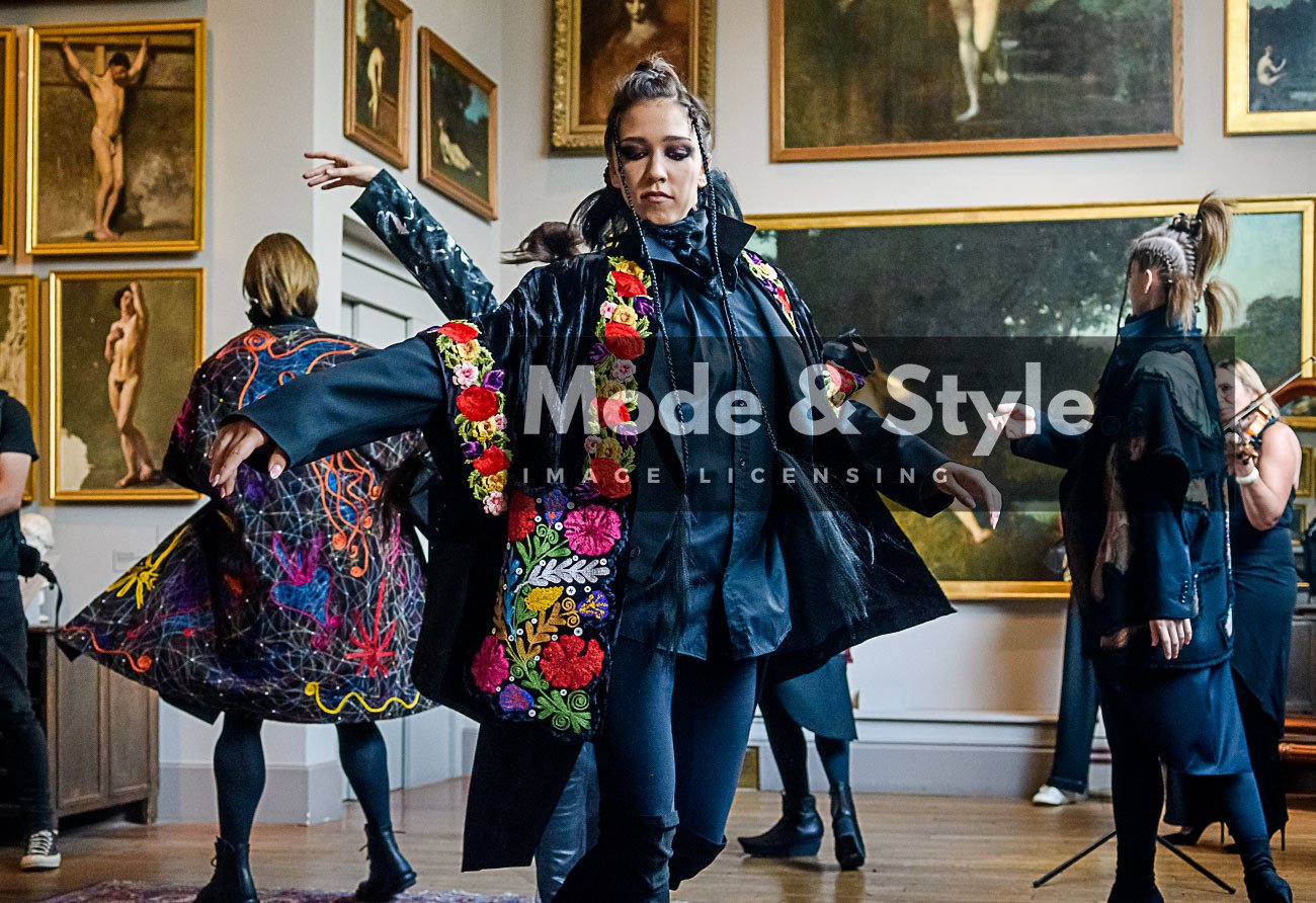 PARIS, FRANCE – JUL 05: A model dancing during the Franck Sorbier Autumn Winter collection, during the Paris Fashion Week on July 05, 2023 in Paris, France.